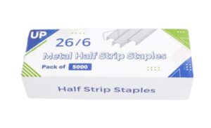 Product:                 Metal Half strip Staples – 26/6 (Box of 5000)
